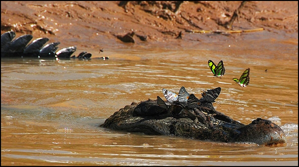 The Yacare caiman can be found in various parts of Central America but most of them, about ten million, can be found in the Brazilian Pantanal, which is the largest single population of crocodilians in the world. It is relatively small, rarely exceeding nine feet (three meters) long, and as such, falls prey to anacondas and jaguars.