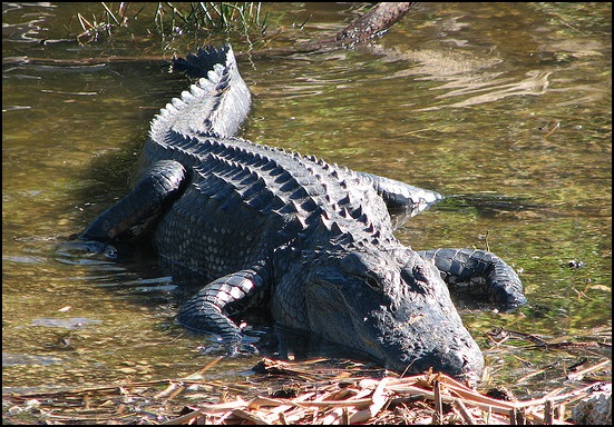 08 Crocodile basking in the sun by Damien Williams cc2.0 http://www.flickr.com/photos/dami3nator/3631100793/