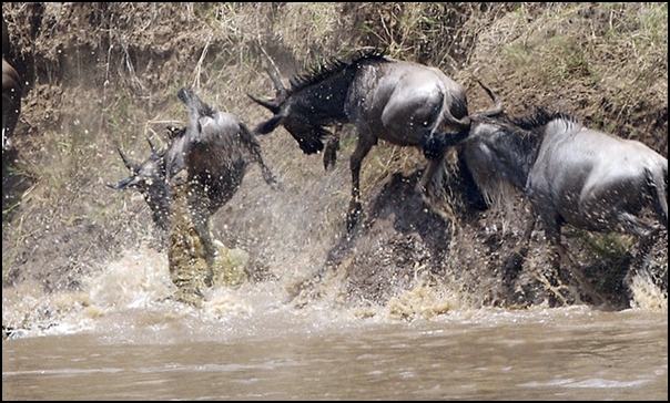 09 Nile crocodile lunging at a leaping wildebeest youngster by Lip Kee cc2.0 http://creativecommons.org/licenses/by/2.0/deed.en http://www.flickr.com/photos/lipkee/2881752455/in/photostream/