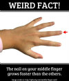 Have you ever noticed that your nails are not growing at the same pace? It’s not just your imagination. Apparently, the smaller the finger is, the slower the nail grows so your little finger has the slowest growing nail and your middle finger has the fastest growing nail.